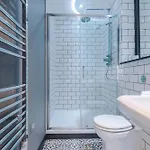 El apartamento dispone de cuarto de baño con secadores de pelo y toallas de baño. Además, hay ducha a ras de suelo y un inodoro separado.